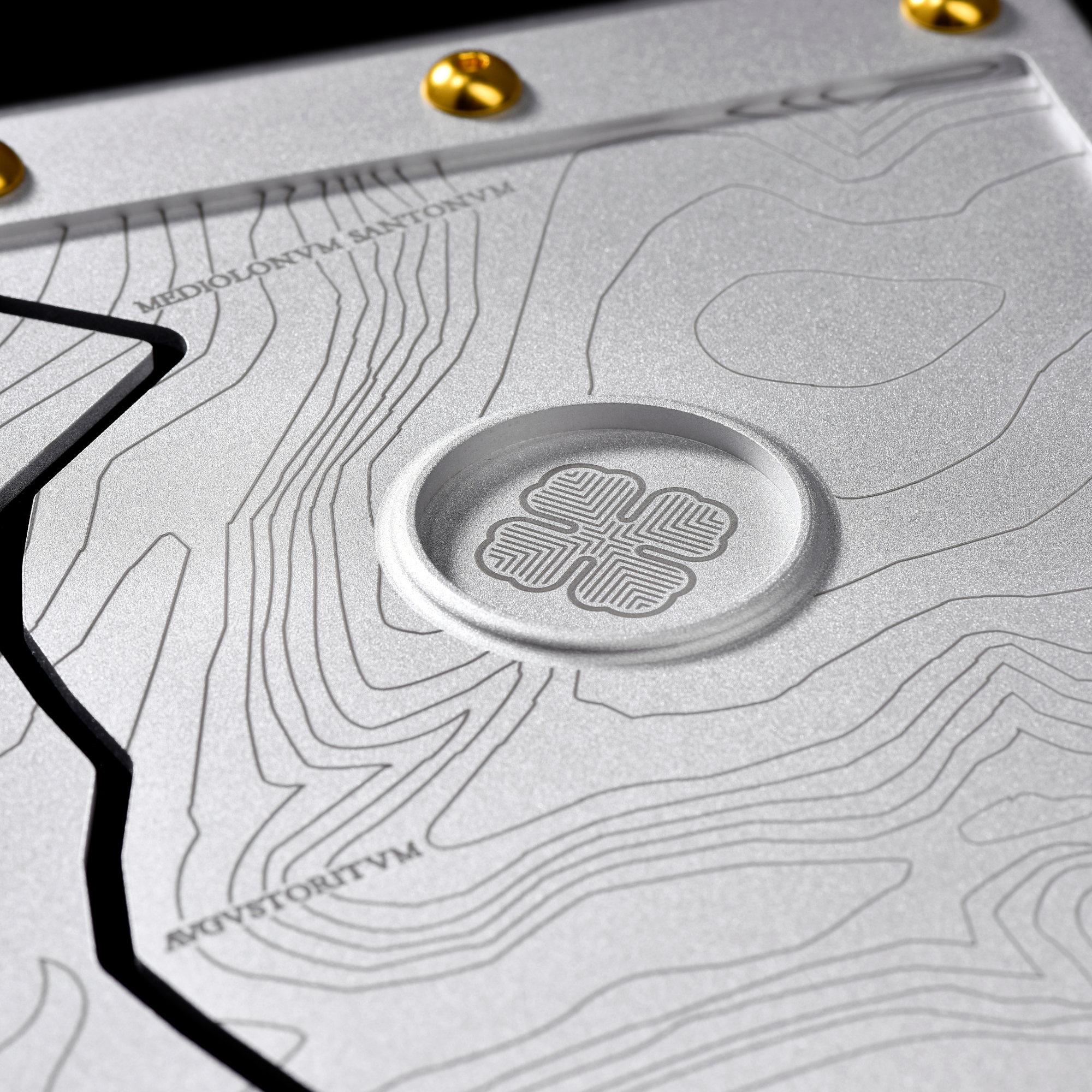 It is therefore quite natural that the goldsmiths of Ateliers Camus, in collaboration with French artisans, designed a box opening along a line reproducing the route of the Via Agrippa, from Lyon to Saintes. Making the bold choice of mixing several materials with each other, here metal, a material at the service of modernity, meets crystal and stone, ancestral materials par excellence.