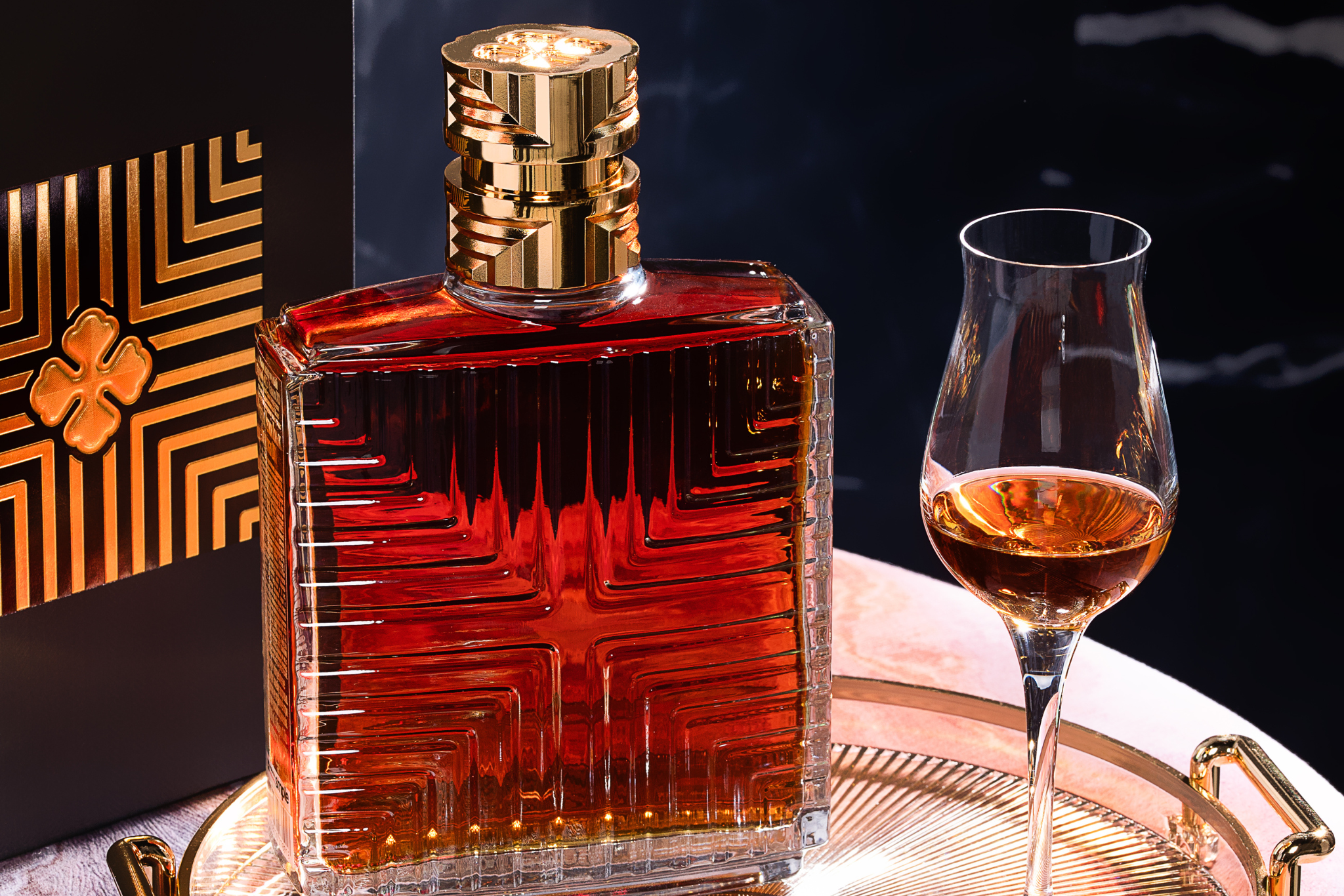 La carafe est fermée par un bouchon doré dont le dessus a été sculpté pour révéler le trèfle à quatre feuilles, symbole de CAMUS depuis 1863.